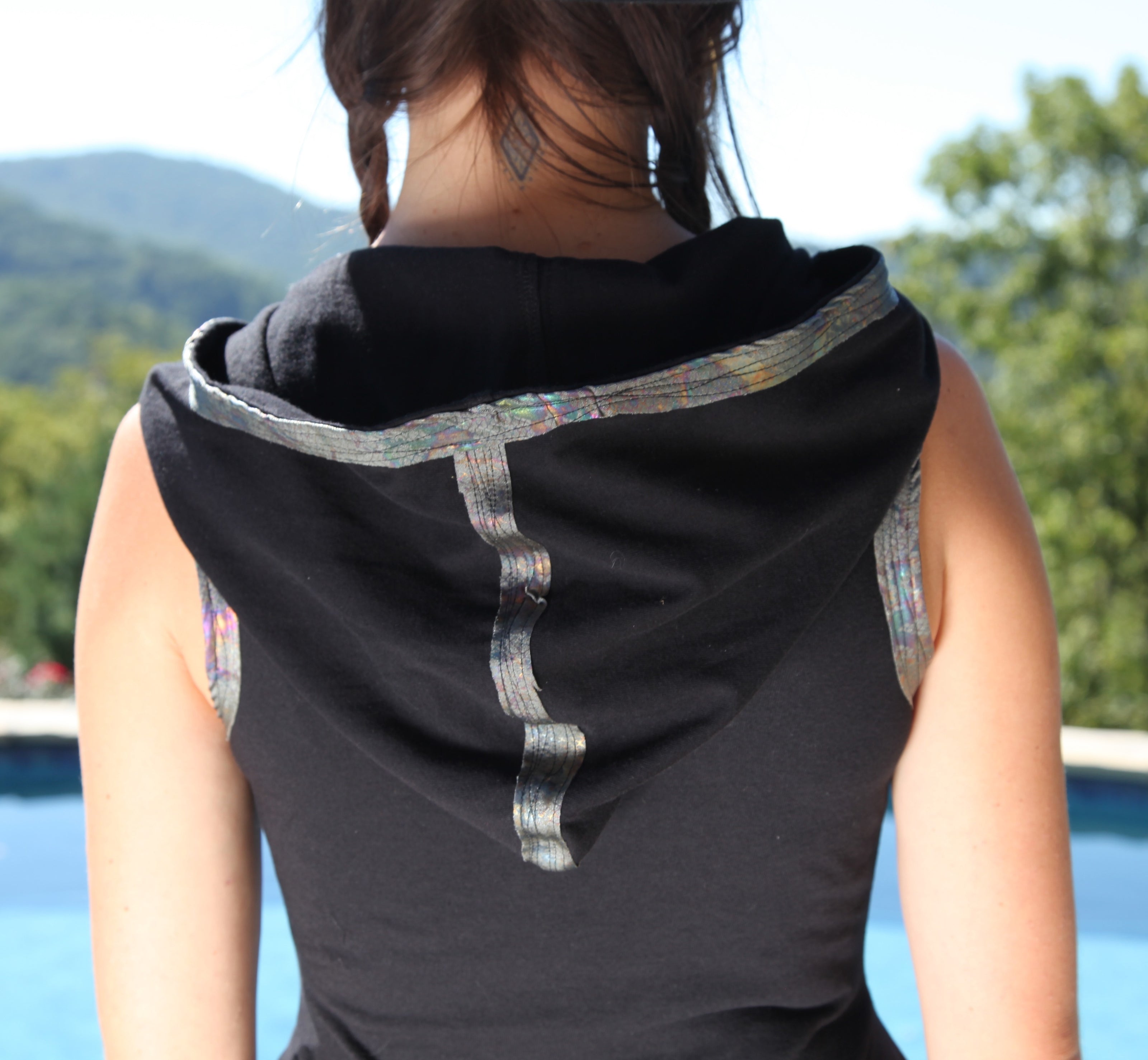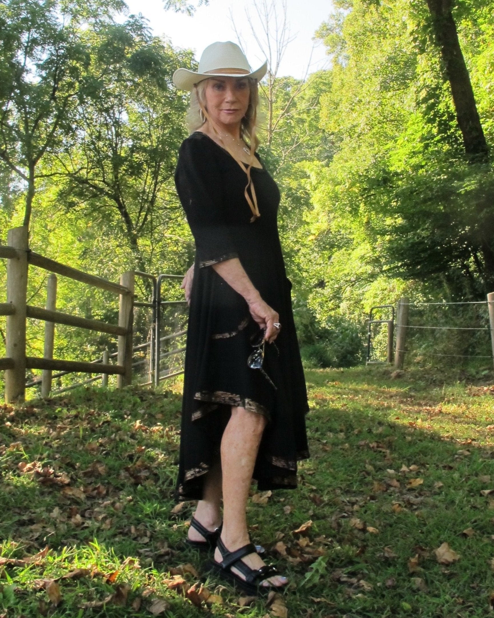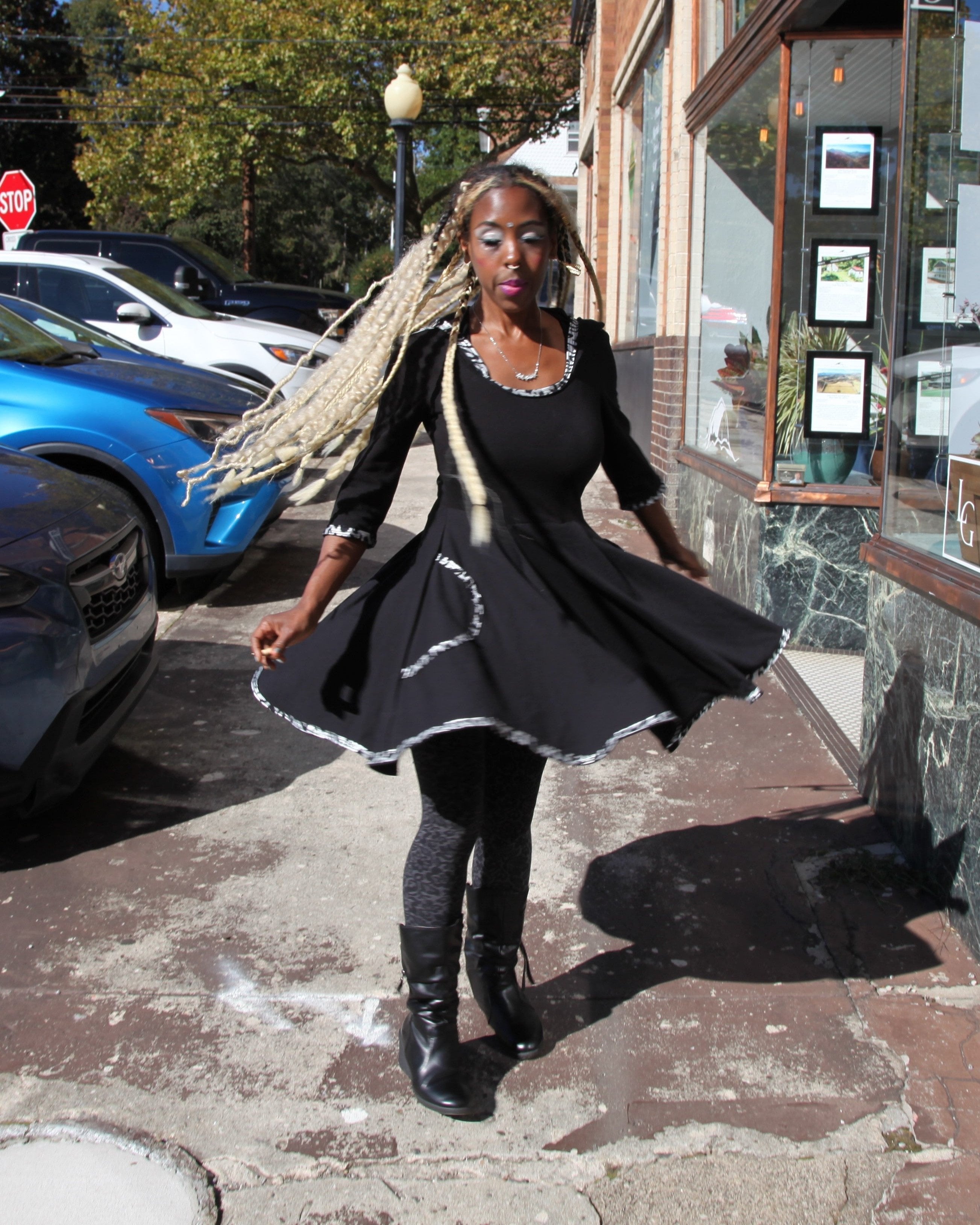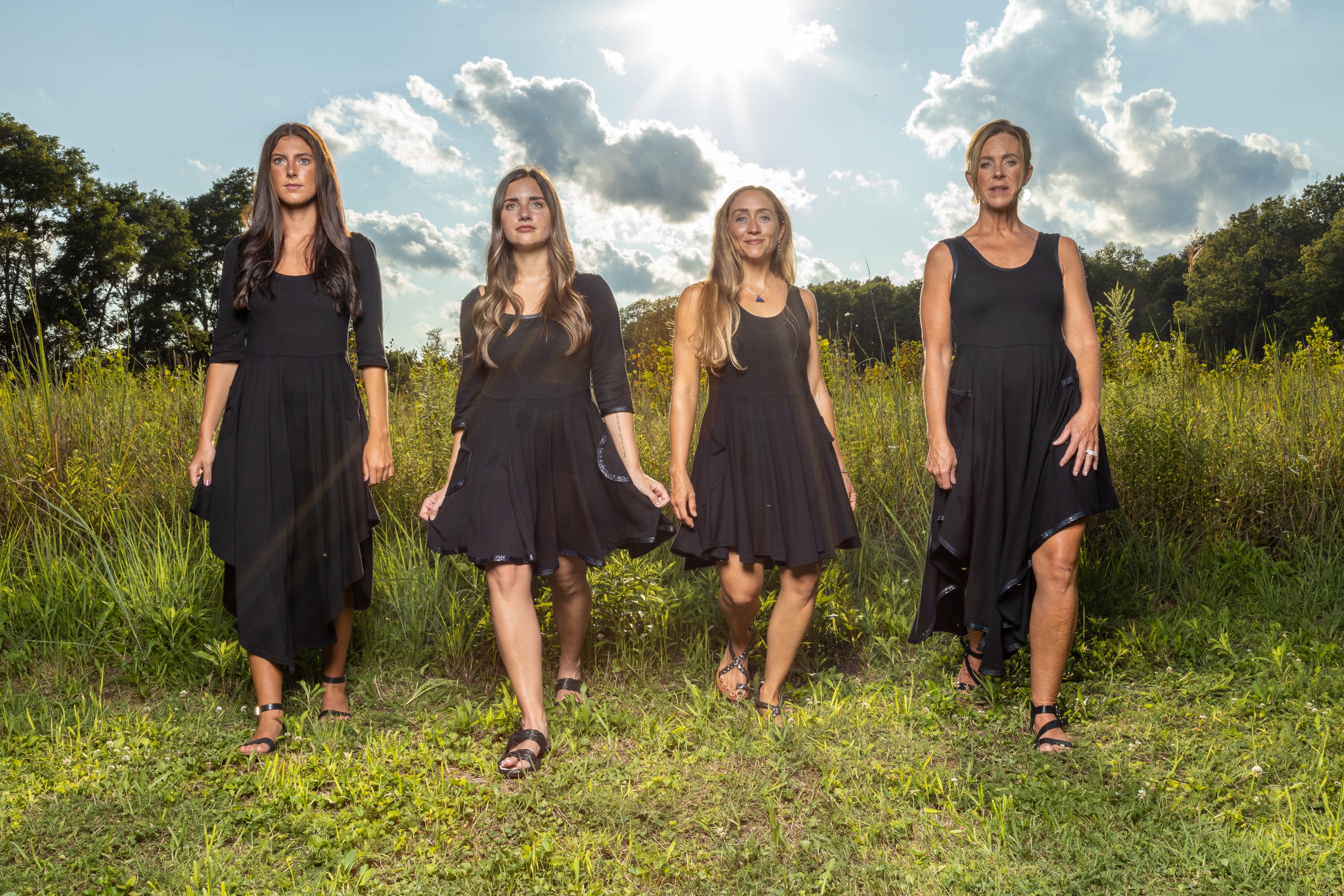 Elevate your style with Daily Threads, the little black dress, redefined. We are lifted by how we feel in a dress that spins perfectly around our whirling bodies. A versatile wardrobe staple that you can dress up or dress down for any occasion, these are available as sleeveless or with three-quarter-length sleeves, in an above-the-knee hemline or a long cascading curved hemline, with or without cosmic, holographic, reflective snakeskin trim, and with or without a hood. Crafted from premium, locally-sourced organic cotton, these dresses embody both sustainability and elegance. Flowing silhouettes in luxuriously-soft fabric drape gracefully on women of all ages. Daily Threads are the perfect timeless adornment.