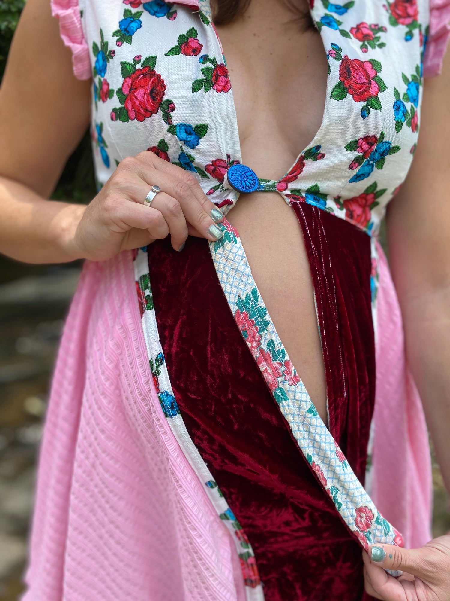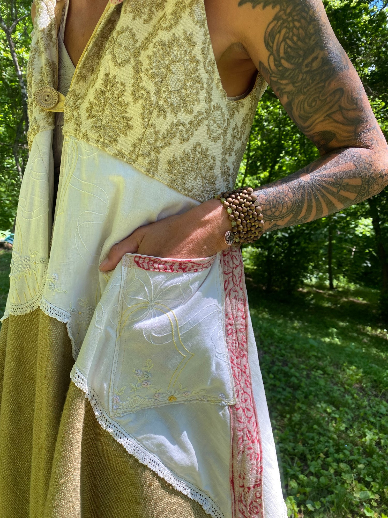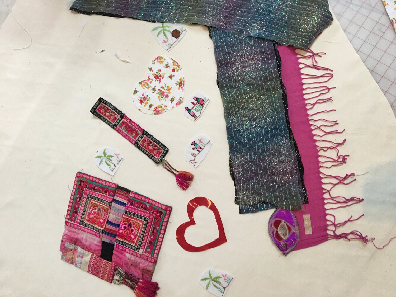 Absolutely! We encourage you to include personal fabrics, pieces from family heirlooms, or meaningful textiles, in your story cloak. This adds a deeply personal touch and strengthens the connection to your heritage and transformation. We treat your vintage fabric and heirlooms with mindful intent and careful handling. We will return unused items with your cloak upon completion.